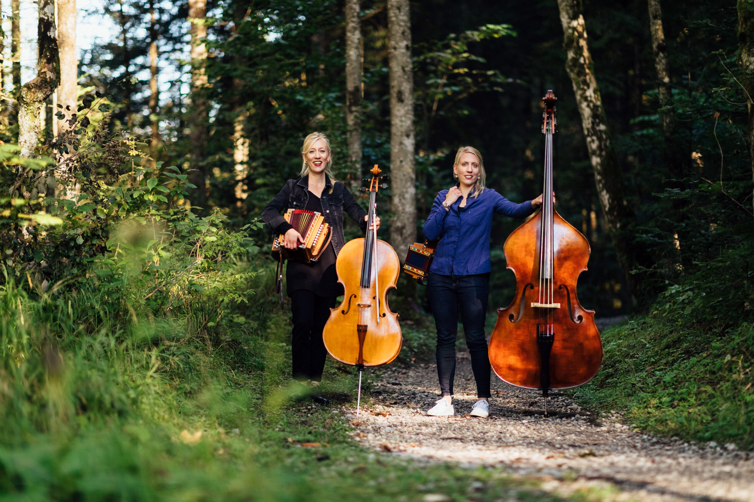 Souverän wechseln sie vom Schwyzerörgeli zum Cello, zum Kontrabass und zurück und kreieren dabei ihre eigene Musikwelt. Wer ihre Musik kennt, weiss: Sie ist stets überraschend, manchmal melancholisch und ernsthaft, mal witzig und voller Schalk. «Manchmal», so erzählen die beiden, «fragen uns die Zuhörenden, ob das tatsächlich richtige Schwyzerörgeli seien.»