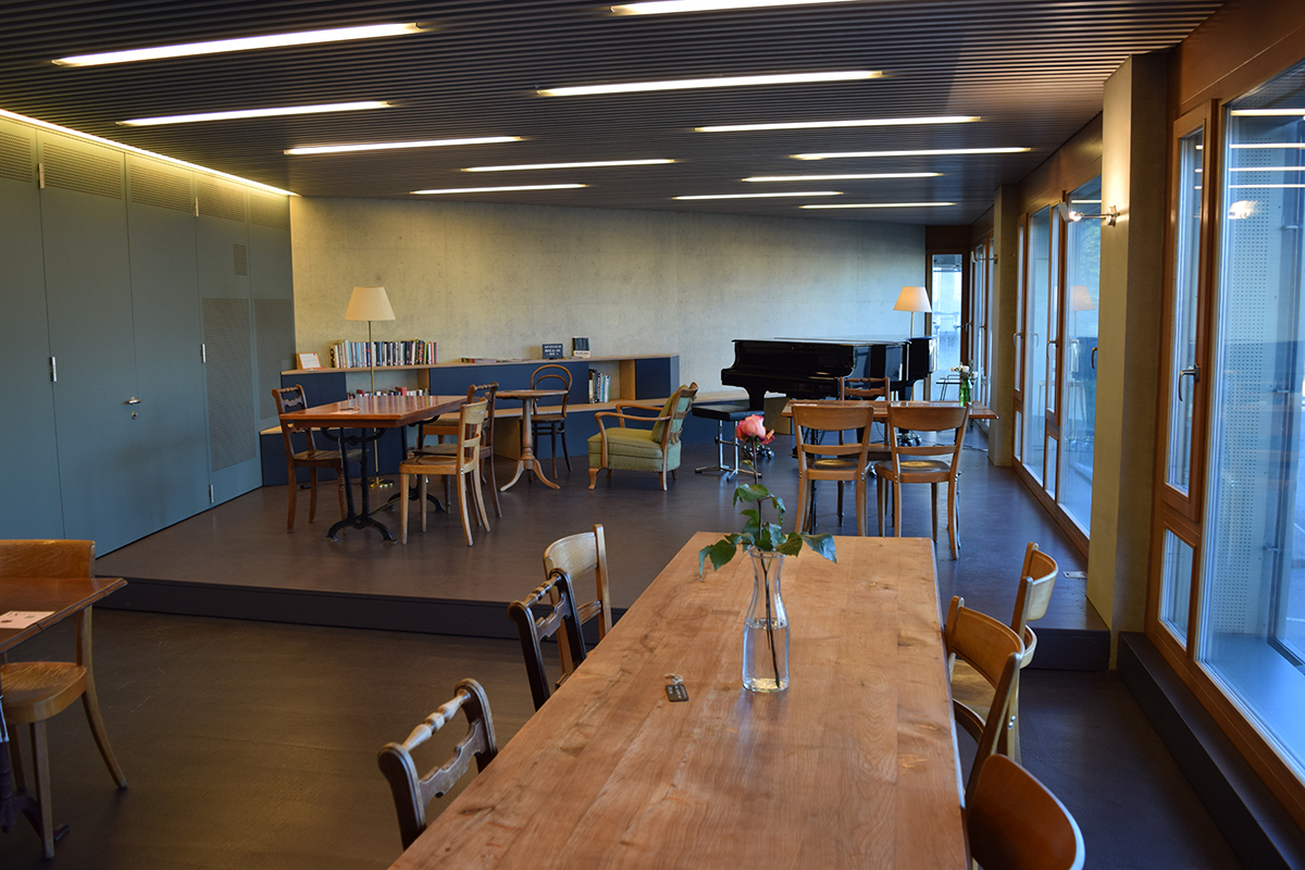 BISTRO: Mit Platz für Aperos bis 150 Personen sowie Bankette bis 70 Personen bietet das BISTRO Platz für Tagungen, Vorträge, festliche Anlässe, Schulabschlussfeiern, Podiumsdiskussionen, Vereinsanlässe und private Feste (für Vereinsmitglieder). Die Musikanlage ist im Raum integriert. Das BISTRO bietet 160qm Nutzfläche, verschiedene Beizentische mit 50 Holzstühlen,